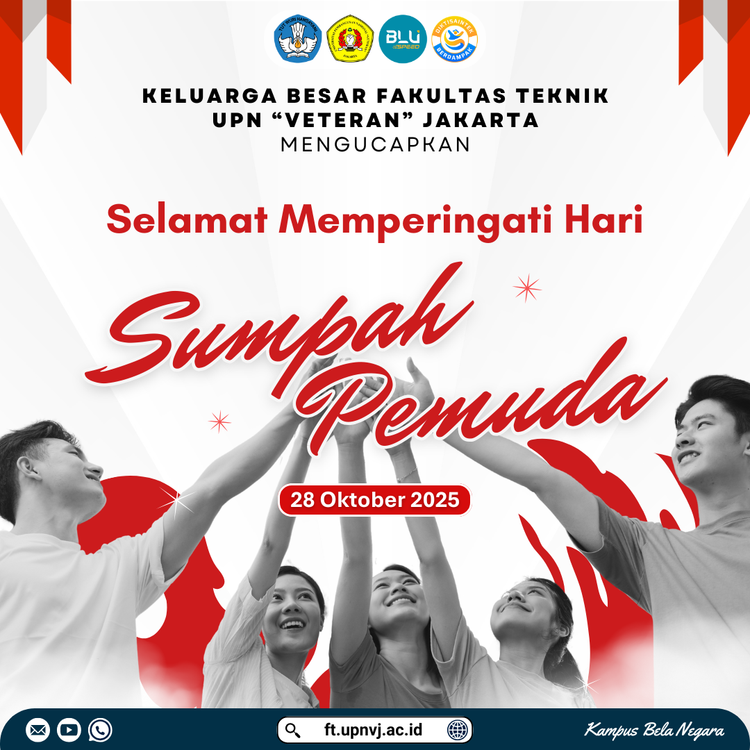 FT UPNVJ – Keluarga Besar Fakultas Teknik Universitas Pembangunan Nasional “Veteran” Jakarta (UPNVJ) mengucapkan selamat memperingati hari Sumpah Pemuda 28 Oktober 2025. Pemuda Pemudi Bergerak, Indonesia Bersatu.