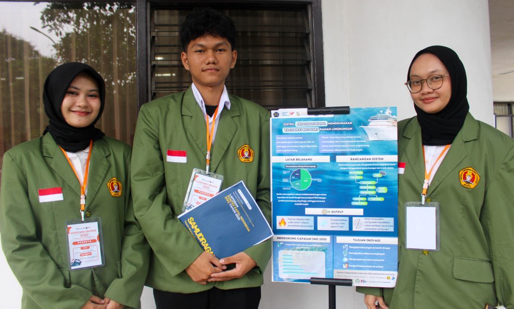 Prestasi tersebut diraih melalui karya inovatif berjudul “Sistem Desalinasi Kapal Menggunakan Waste Heat Recovery Ramah Lingkungan”, yang memanfaatkan panas buang mesin kapal sebagai sumber energi alternatif untuk proses desalinasi air laut secara efisien dan berkelanjutan.