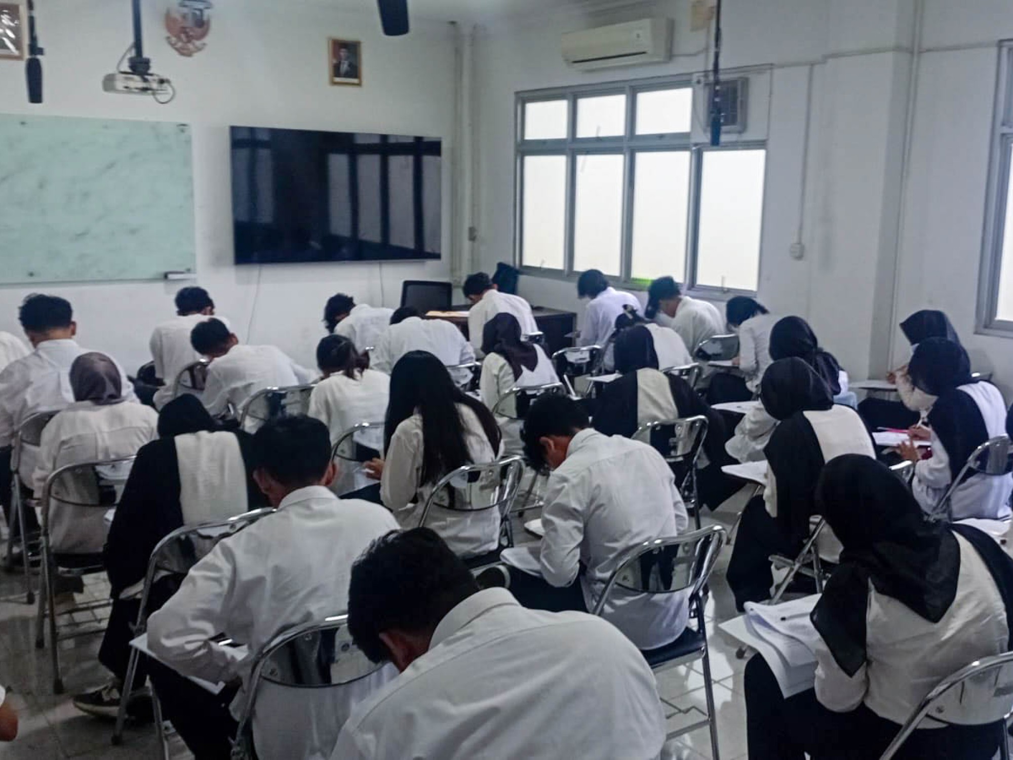 “Semoga semua mahasiswa dapat mengerjakan ujian dengan fokus dan maksimal. Gunakan kesempatan ini untuk menunjukkan hasil belajar selama satu semester,” ujar salah satu Dosen Pengawas Fakultas Teknik UPNVJ. Suasana UAS yang tertib dan kondusif tercermin dari mahasiswa yang serius mengerjakan ujian di kelas.