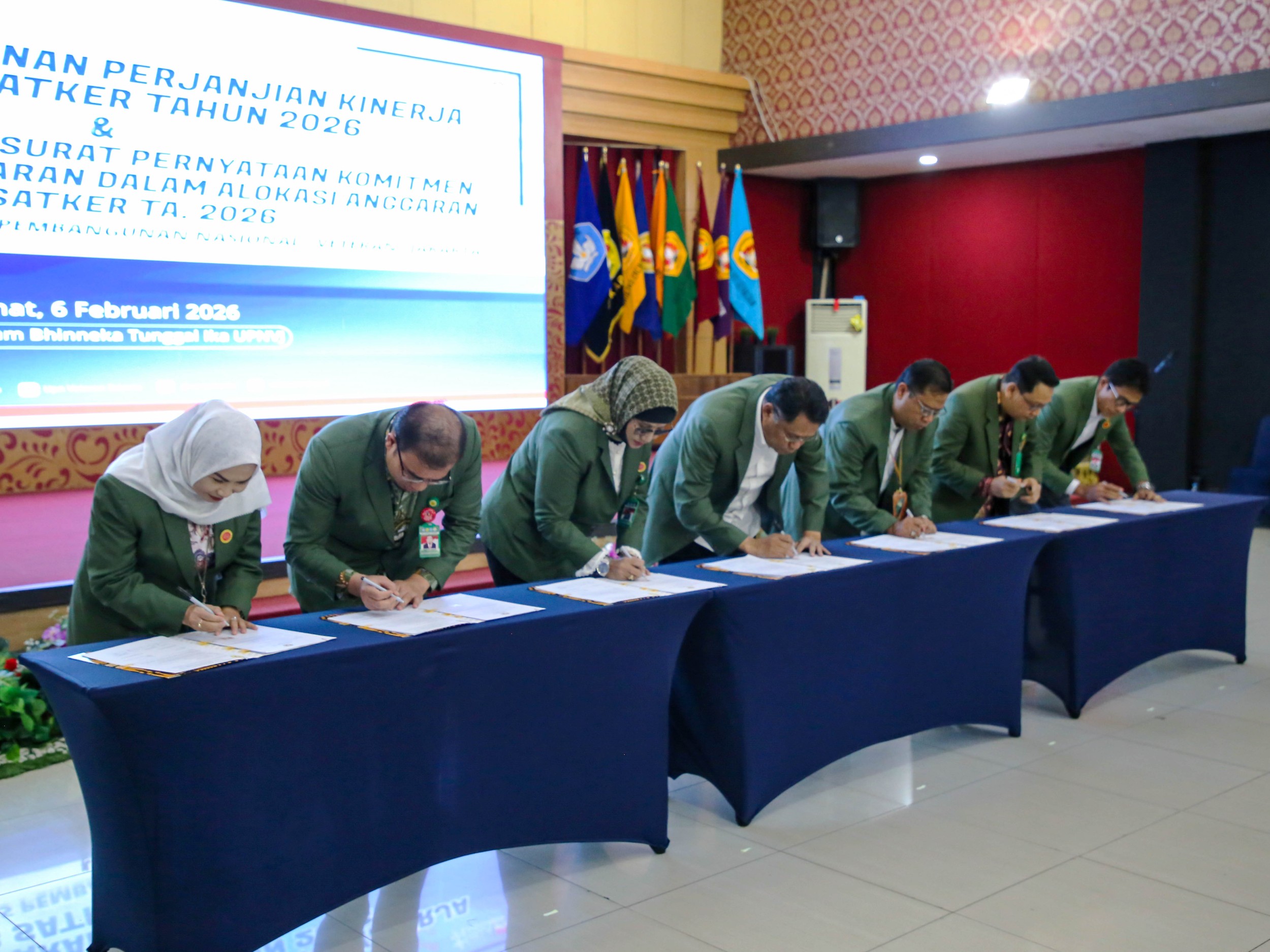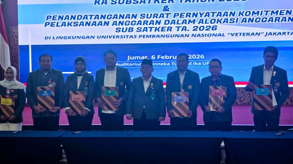FT UPNVJ – Universitas Pembangunan Nasional “Veteran” Jakarta (UPNVJ) melaksanakan Penandatanganan Perjanjian Kinerja (PK) Kepala Subsatker Tahun 2026 pada Jumat, 6 Februari 2026, bertempat di Auditorium Bhinneka Tunggal Ika. Kegiatan ini diikuti oleh seluruh pimpinan unit kerja di lingkungan UPNVJ, termasuk Dekan Fakultas Teknik, Dr. Eng. Ir. Teguh Firmansyah.
