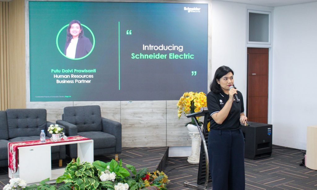 Selanjutnya, kegiatan dilanjutkan dengan pemaparan dari Putu Daivi Prawisanti selaku Human Resource Business Partner yang memperkenalkan profil Schneider Electric. Ia menjelaskan bahwa Schneider Electric merupakan perusahaan global yang bergerak di bidang manajemen energi dan otomasi industri, serta telah dipercaya di berbagai sektor industri dalam menyediakan solusi efisiensi energi dan transformasi digital.