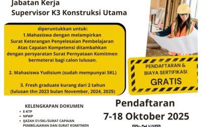 FT UPNVJ – Universitas Pembangunan Nasional “Veteran” Jakarta (UPNVJ) akan menyelenggarakan kegiatan Sertifikasi Kompetensi Tenaga Kerja Konstruksi yang ditujukan bagi...