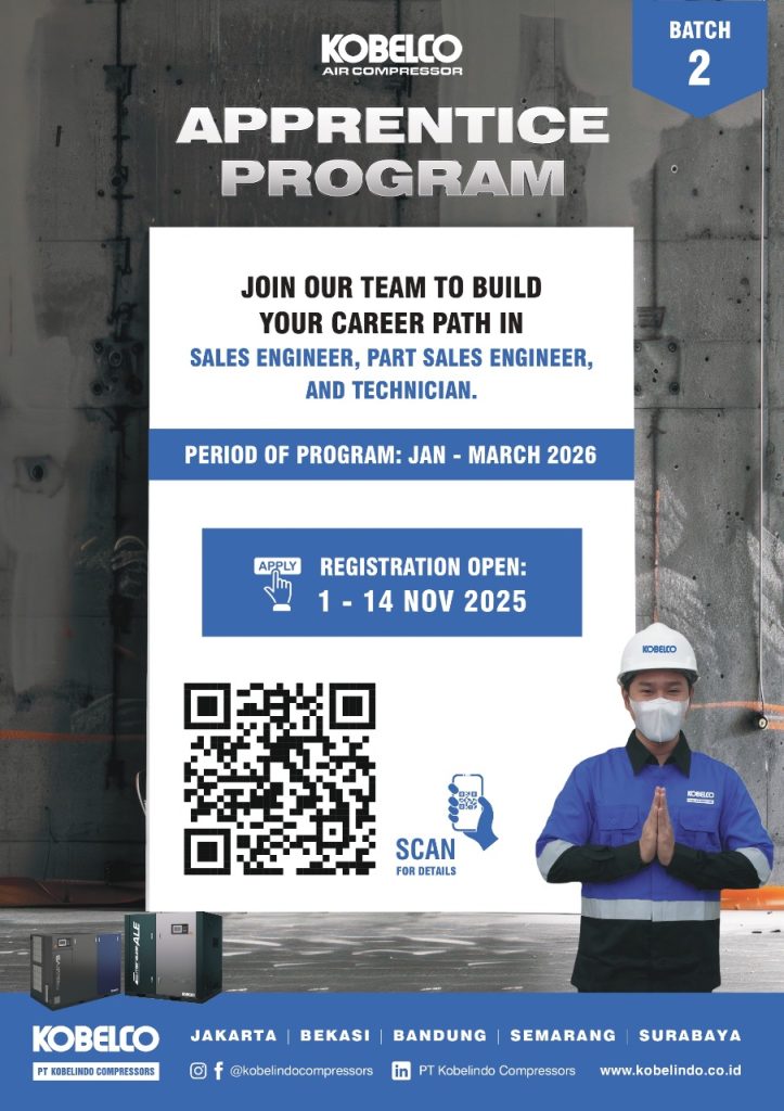 PT Kobelindo Compressors Buka Apprentice Program Batch 2 untuk Mahasiswa dan Fresh Graduate Teknik