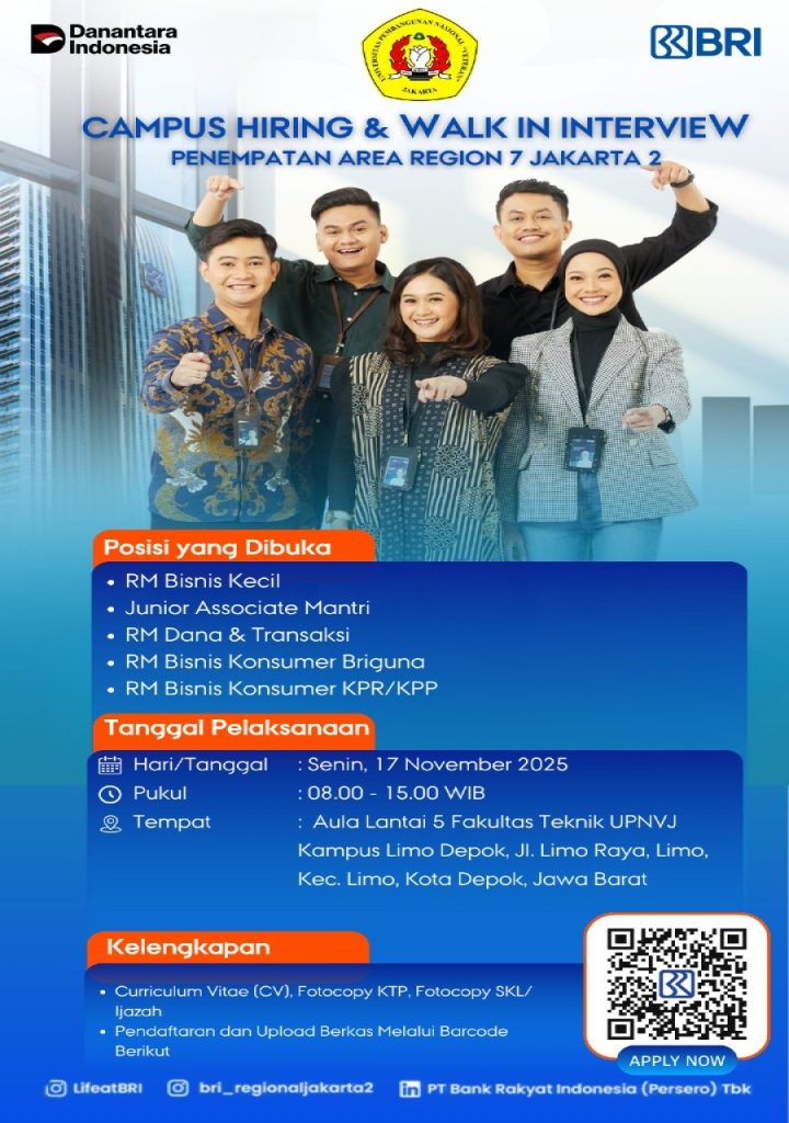 Yuk, Jadi Generasi BRILiaN! BRI Gelar Walk In Interview di Campus Hiring UPNVJ