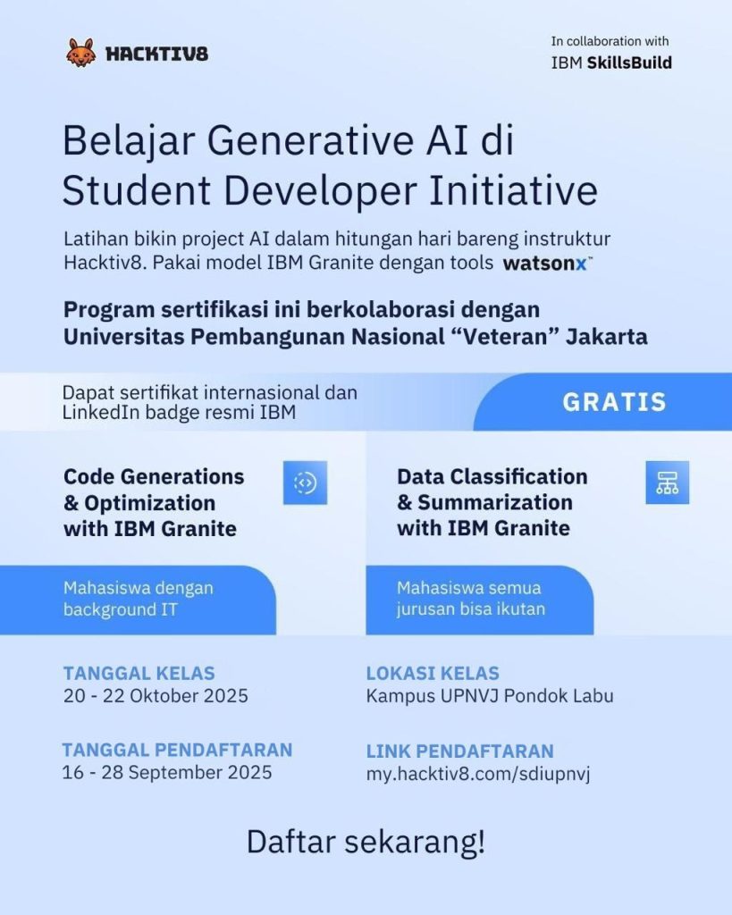 Mahasiswa UPNVJ, Ikuti belajar AI di Student Developer Initiative bersama HACKTIV8