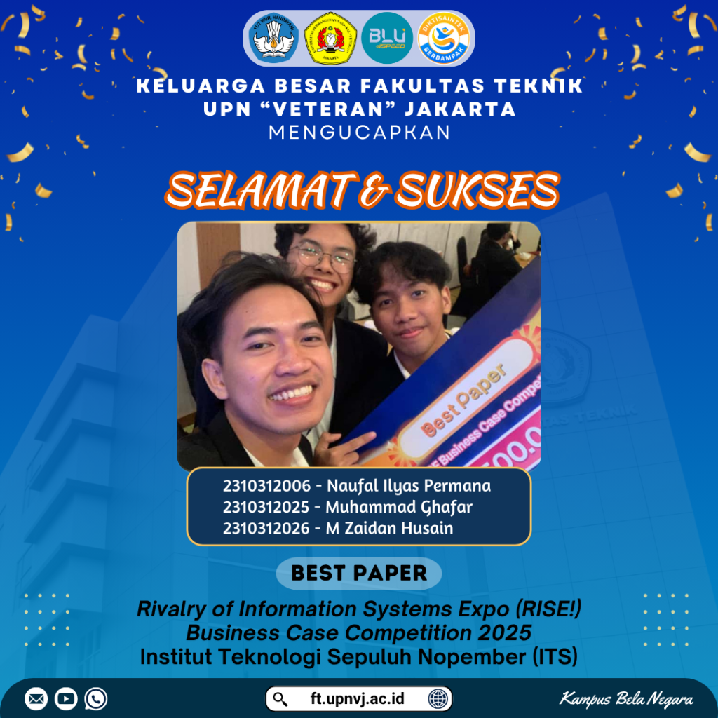 Selamat Atas Peraihan Best Paper RISE! Business Case Competition 2025 Oleh Tim Mahasiswa Prodi Teknik Industri