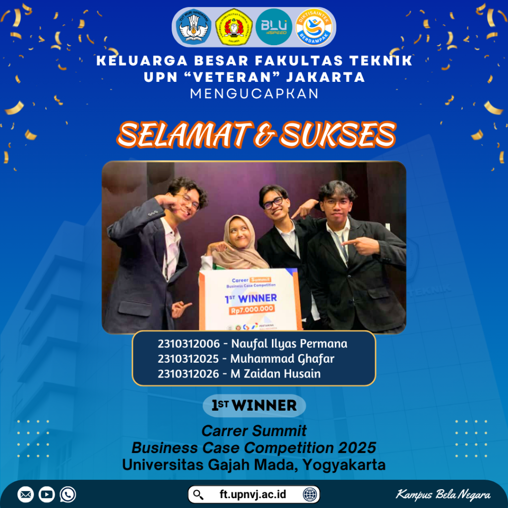 FT UPNVJ – Keluarga Besar Fakultas Teknik Universitas Pembangunan Nasional "Veteran" Jakarta (UPNVJ) mengucapkan Selamat dan Sukses kepada tim mahasiswa...